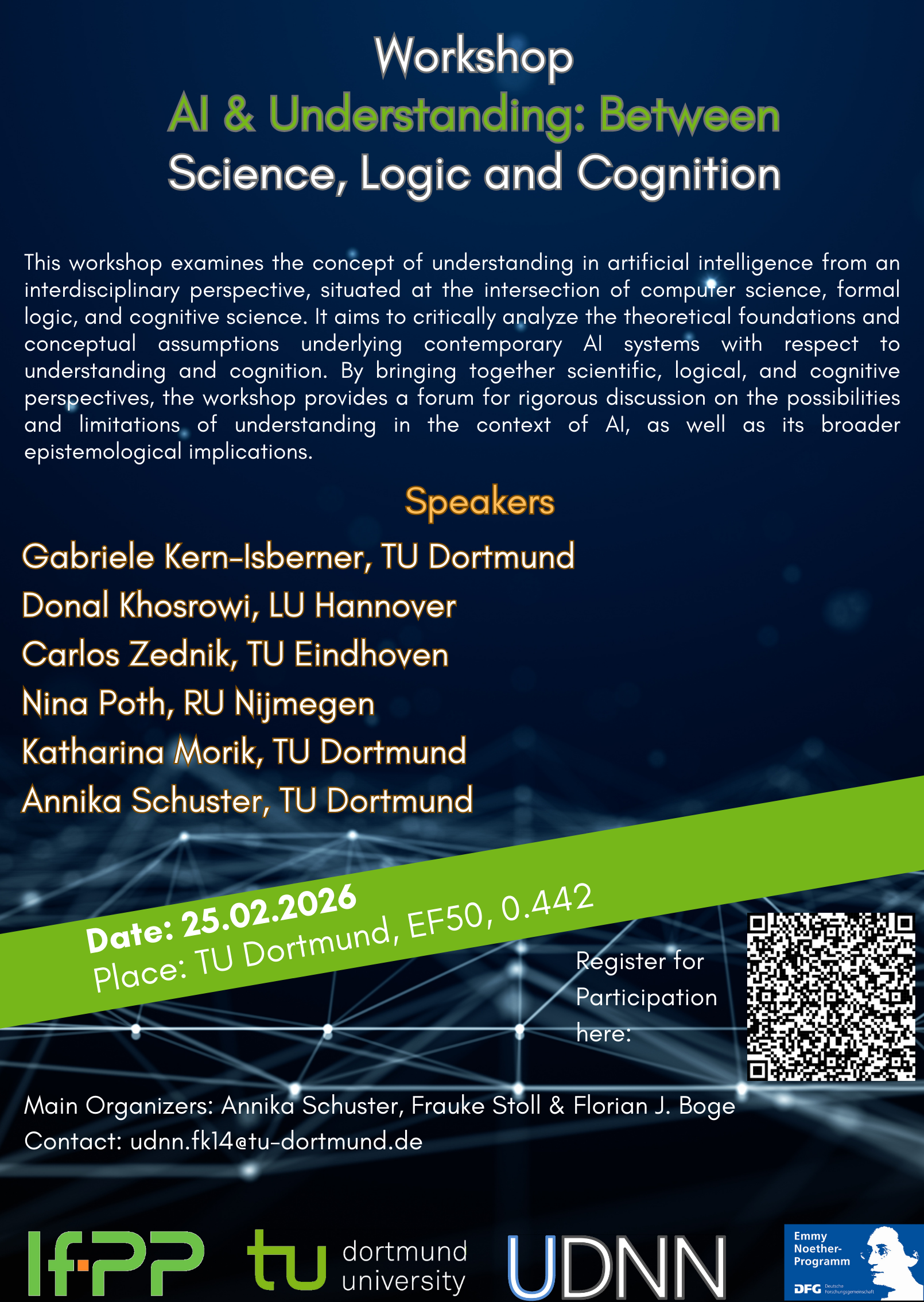 This workshop examines the concept of understanding in artificial intelligence from an interdisciplinary perspective, situated at the intersection of computer science, formal logic, and cognitive science. It aims to critically analyze the theoretical foundations and conceptual assumptions underlying contemporary AI systems with respect to understanding and cognition. By bringing together scientific, logical, and cognitive perspectives, the workshop provides a forum for rigorous discussion on the possibilities and limitations of understanding in the context of AI, as well as its broader epistemological implications.